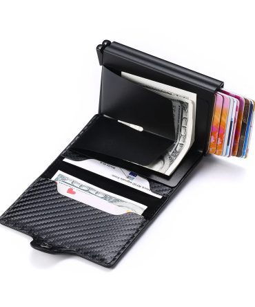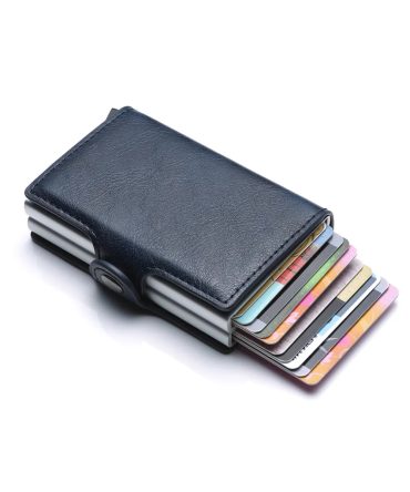 Fashion Casual Pu Double Box Aluminum Alloy Automatic Elastic Card Metal Wallet