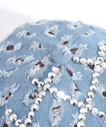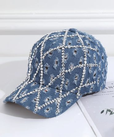Fashion Casual Rhinestone Ripped Denim Baseball Cap