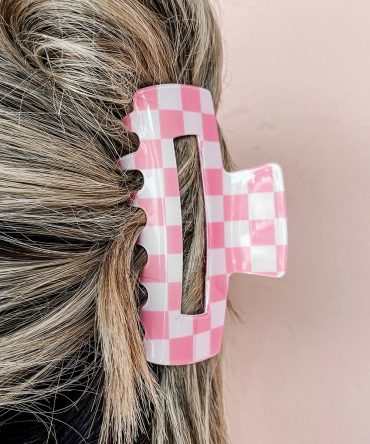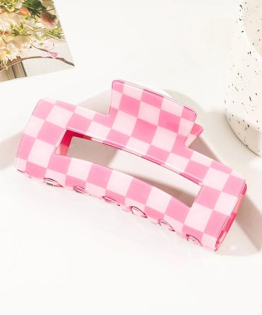Sachet Pink Checkered Print Hollow Out Hair Clip