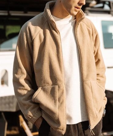Men Fashion Casual Autumn Winter Basic Solid Color Plush Long Sleeve Stand Collar Coat