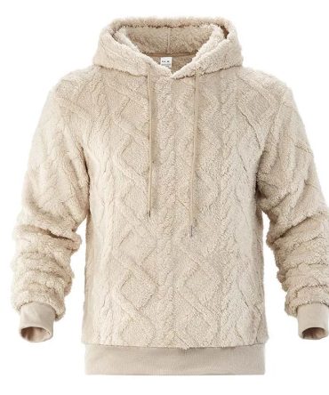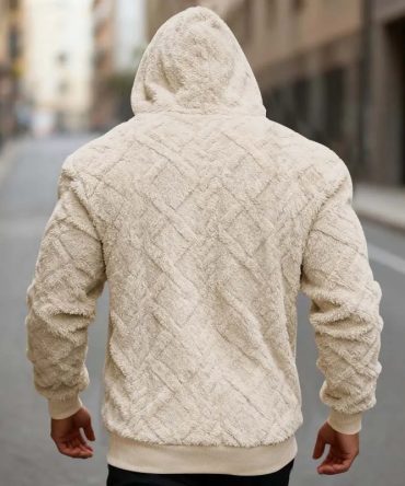 Men Fall Winter Solid Color Rib-Knit Fleece Long Sleeve Hoodies