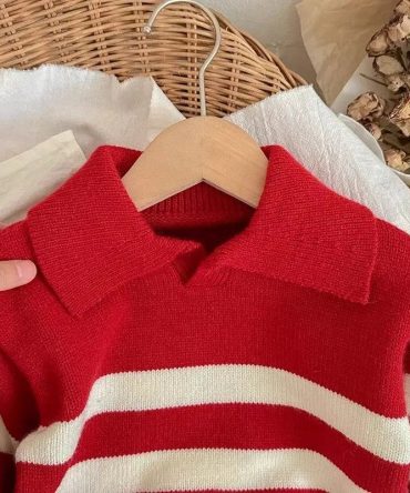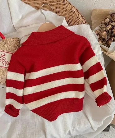 Fashion Casual Autumn And Winter Stripe Lapel Long-Sleeve Knitwear
