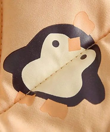Kids Penguin Pattern Letter Printed Hooded Quilted Jacket