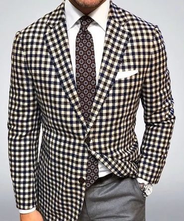 Men’S Single-Breasted Two-Button Checked Slim-Fit Suit
