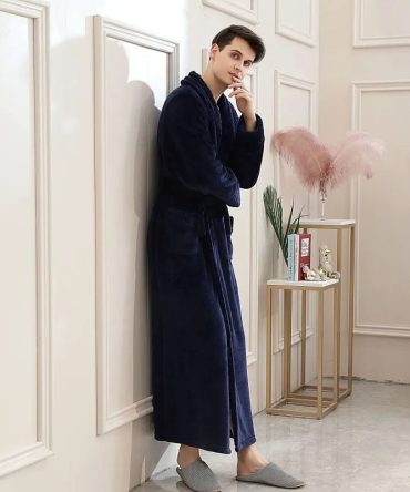 Men Winter Fashion Casual Home Solid Color Flannel Lapel Long Sleeve Robes Sleepwear