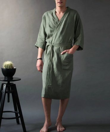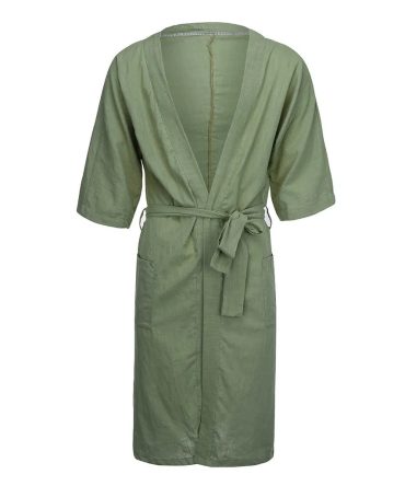 Men Casual French Solid Color Cropped Sleeve Lapel Home Robes Sleepwear
