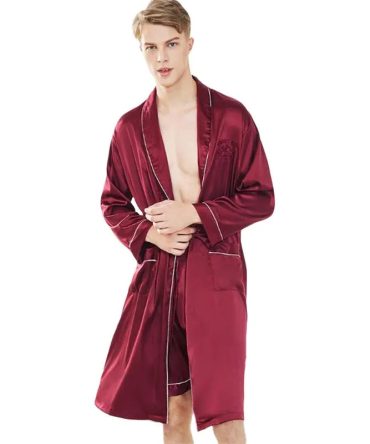 Men Contrast Binding Solid Color Robe And Sleep Short Set