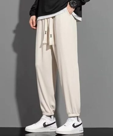 Men Casual Loose Thin Ice Silk Sports Drawstring Pants