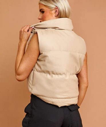 Faux Leather Cropped Puffer Gilet