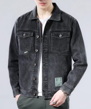 Men Fashion Casual Plus Size Long Sleeve Lapel Black Denim Jacket