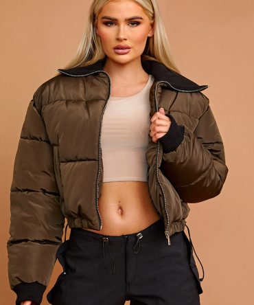 Rib Collar Detail Cropped Puffer Jacket