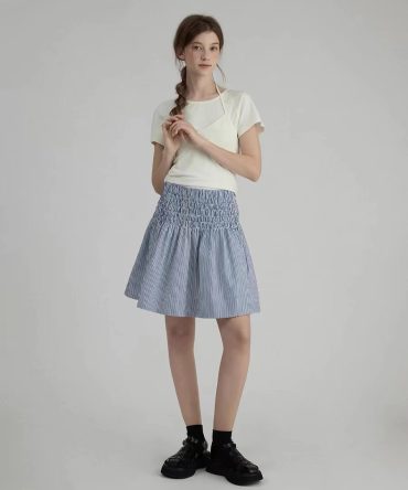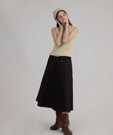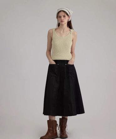 High-Waisted Slimming Pleated A-Line Skirt with Workwear Style
