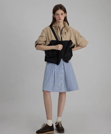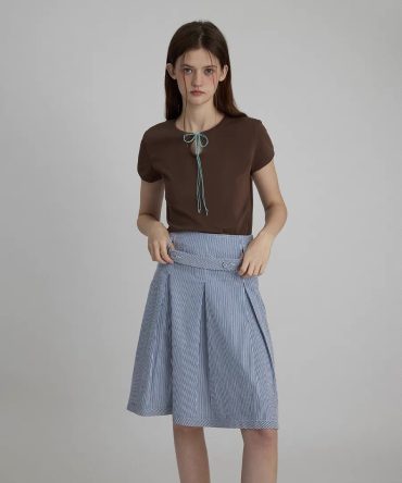 Nordic Blue Striped Pleated High-Waisted Skirt