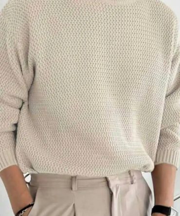 Men Autumn Winter Fashion Casual Simple Solid Color Round Neck Loose Knitwear