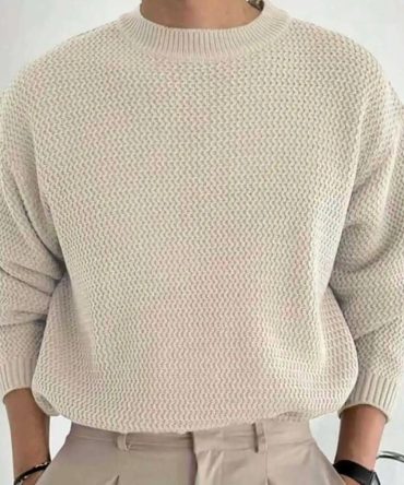 Men Fashion Casual Winter Solid Color Knitted Long Sleeve Loose Sweater