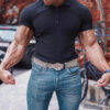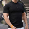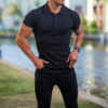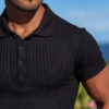 Black Sports Fitness Leisure. stretch vertical short-sleeved polo shirt