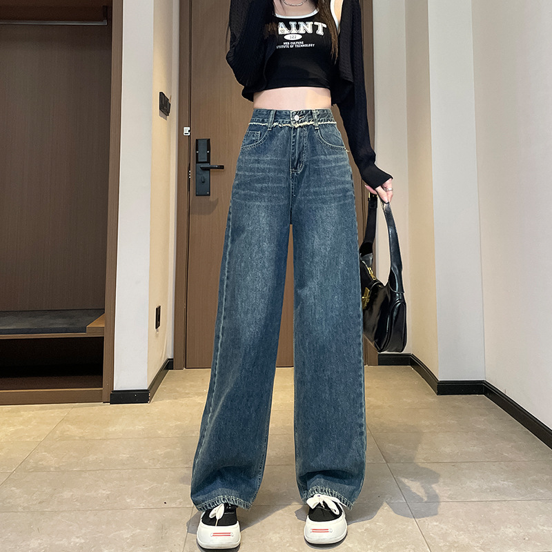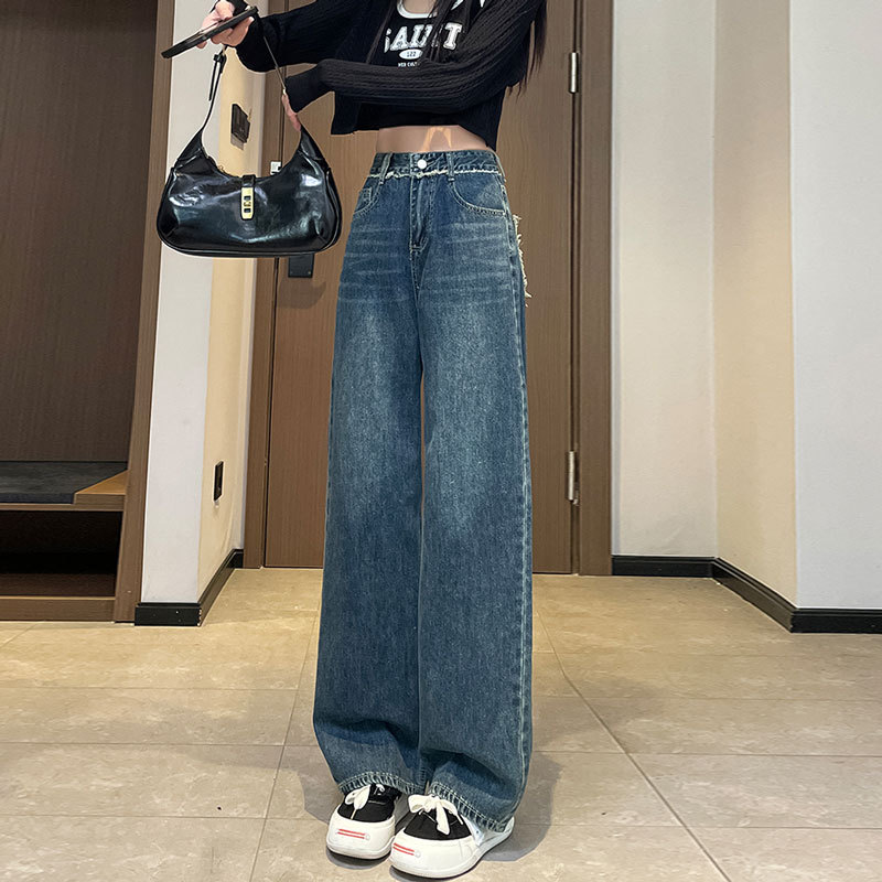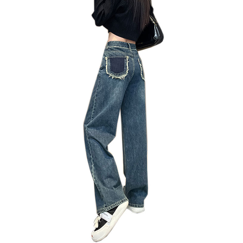 Burr pocket straight tube baggy slim wide leg floor-length jeans
