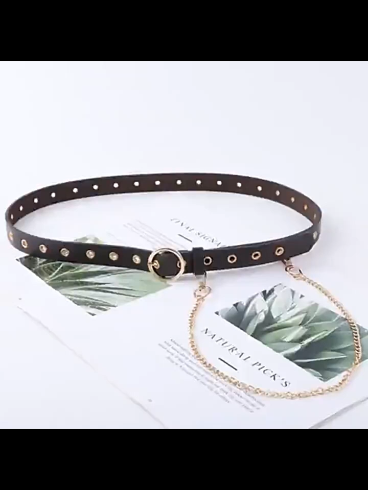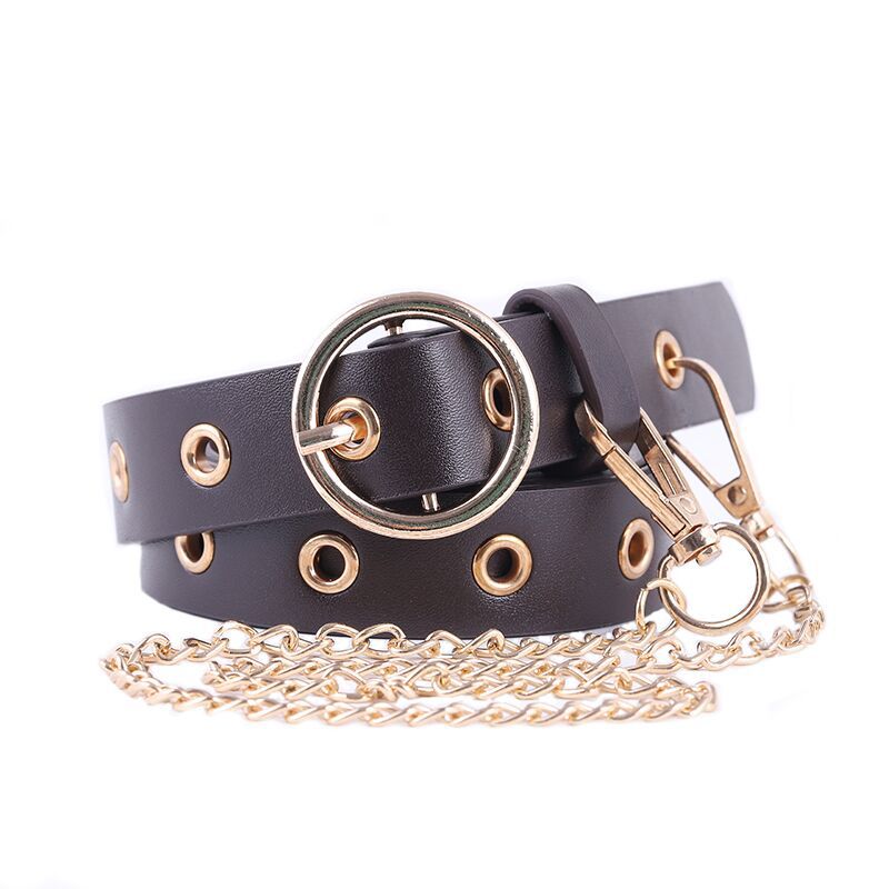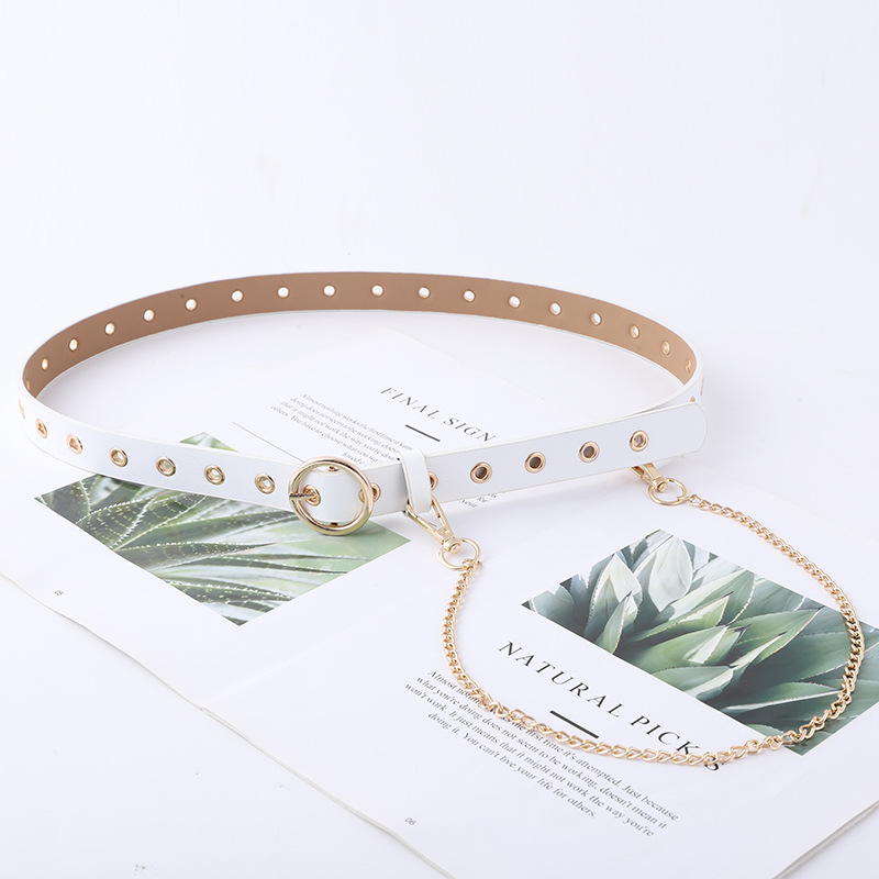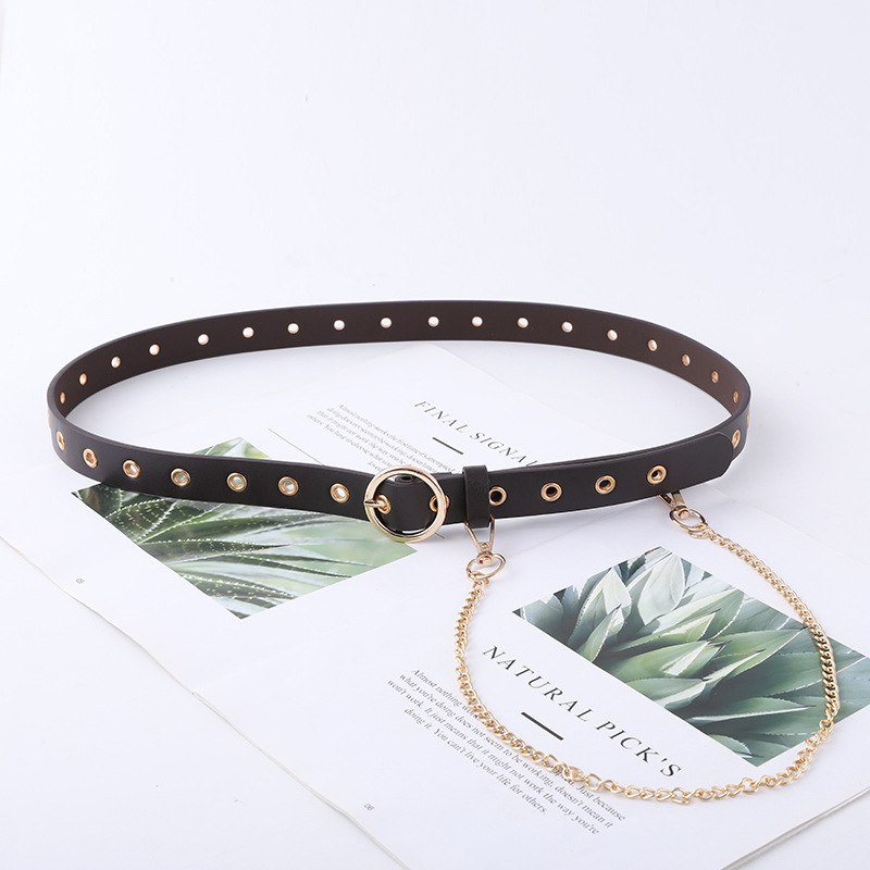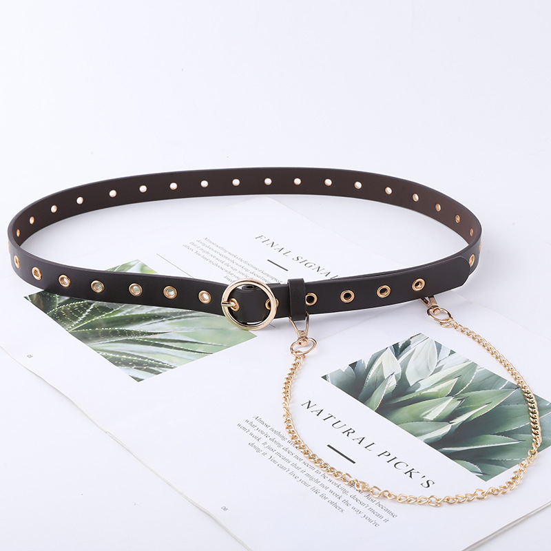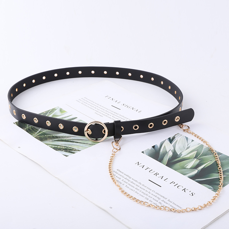 Fashion round buckle belt female full hole hollow decorative gas eye belt with casual casual chain pants Tape
