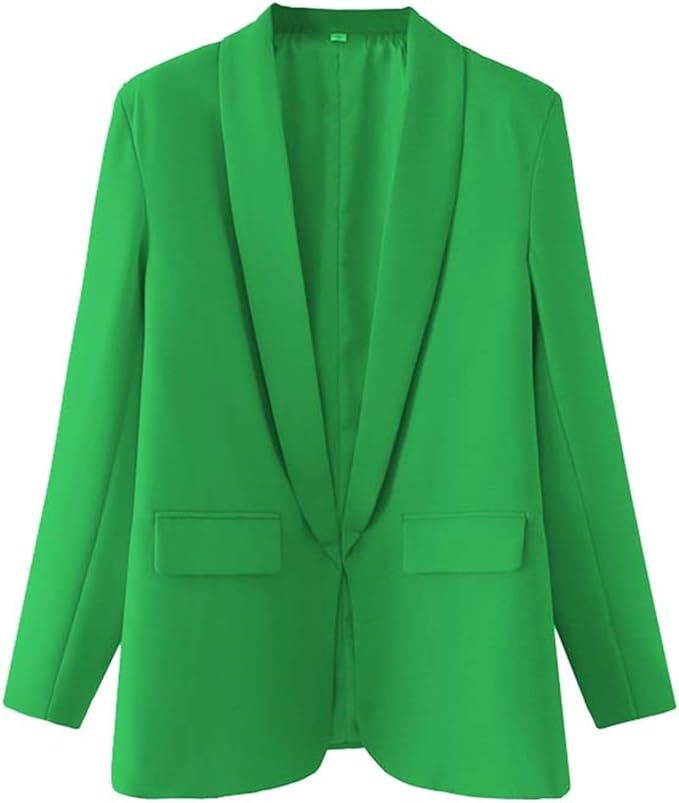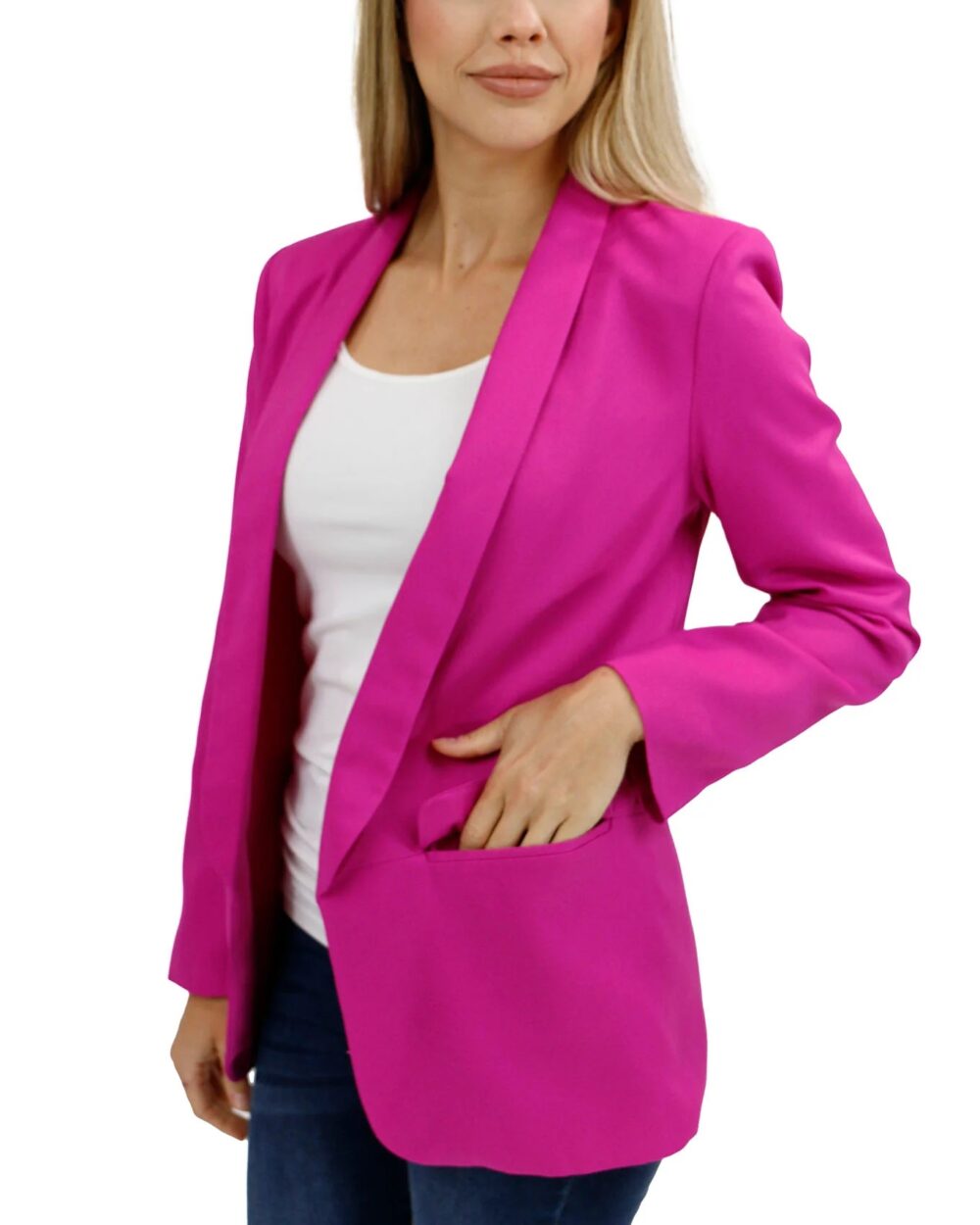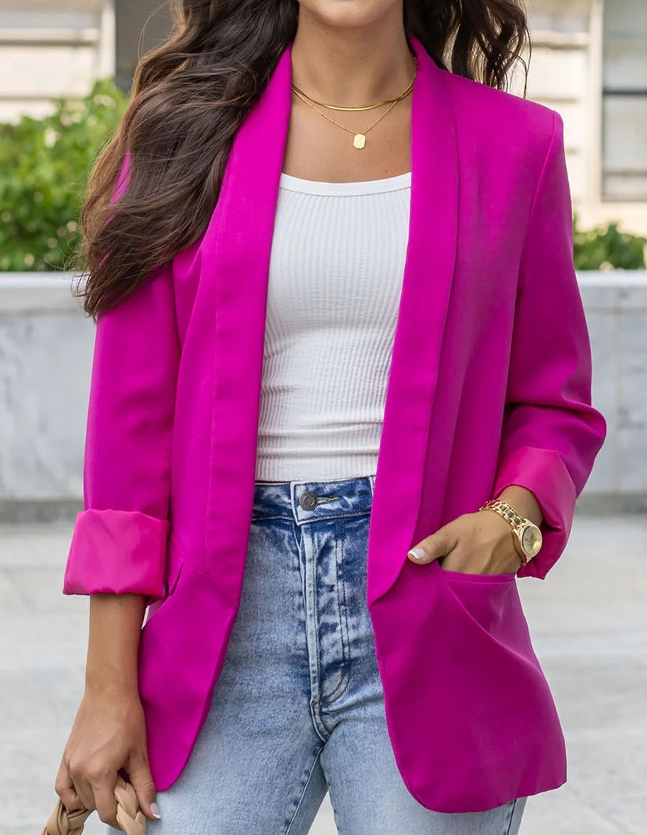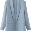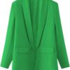 This feminine long-sleeved blazer features a solid color design. perfect for creating a sophisticated and versatile look. Made from a blend of polyester and elastane. this one-button blazer is ideal for both casual and formal occasions. Pair it with tailored pants or a pencil skirt for a chic and polished ensemble.