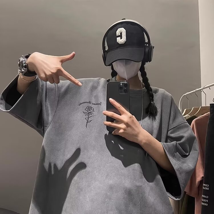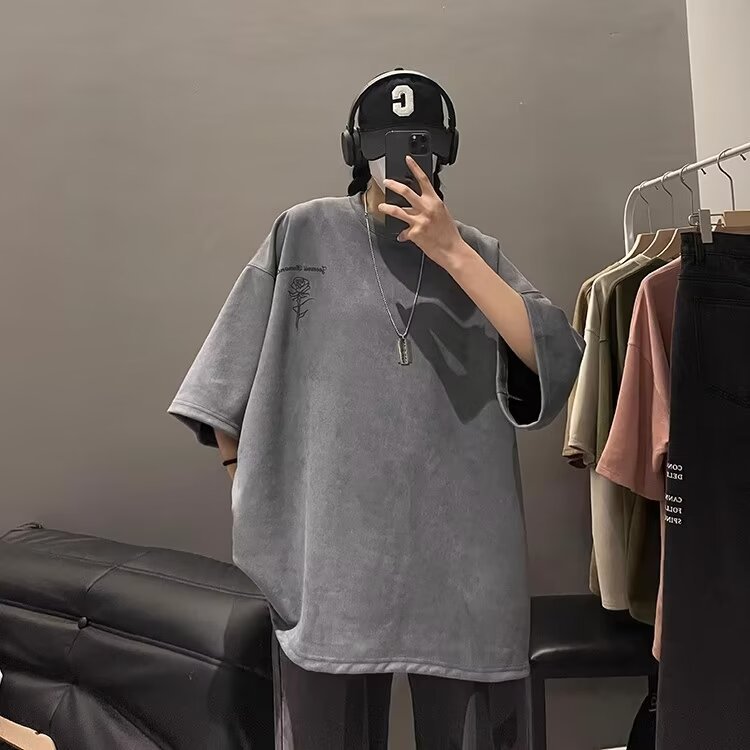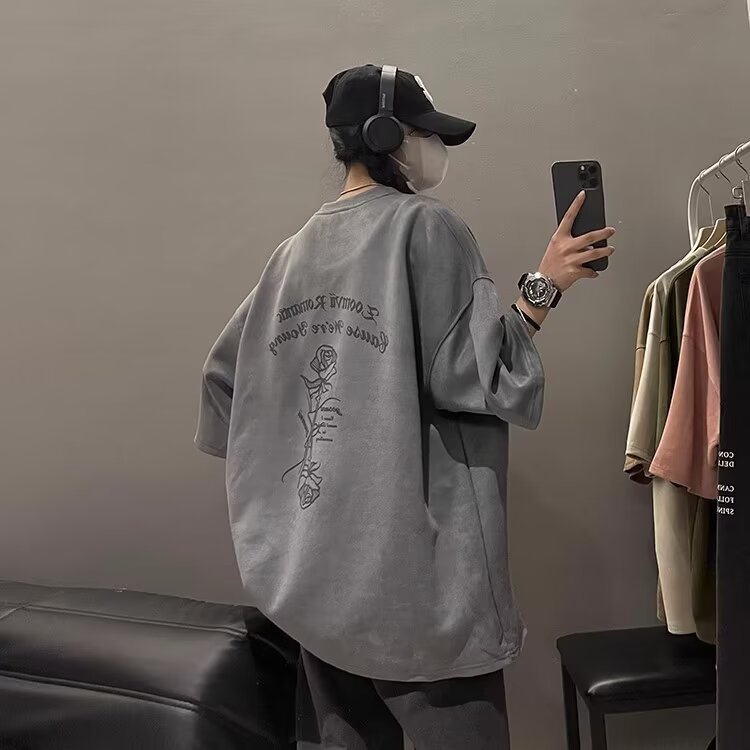 Gray N suede T-shirt Large size loose sleeve t-shirt