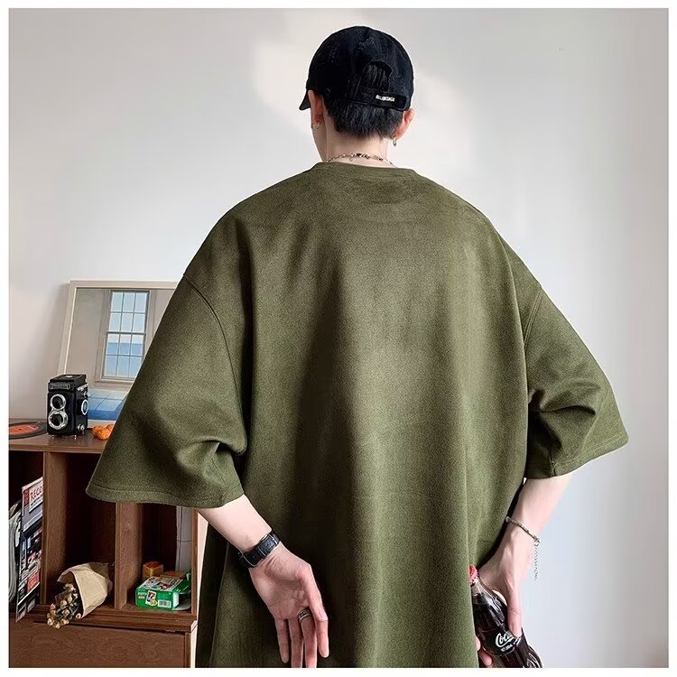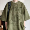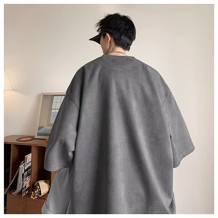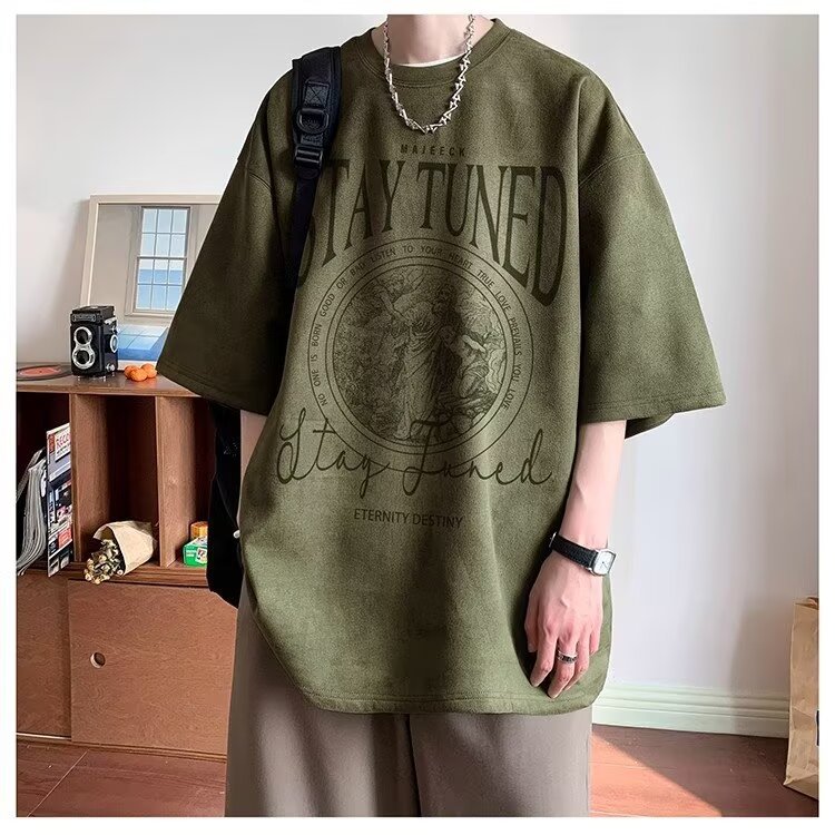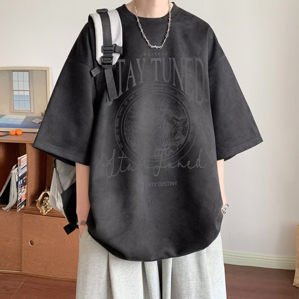 Letter printing design feeling handsome round Collar five-point sleeve short-sleeved T-shirt