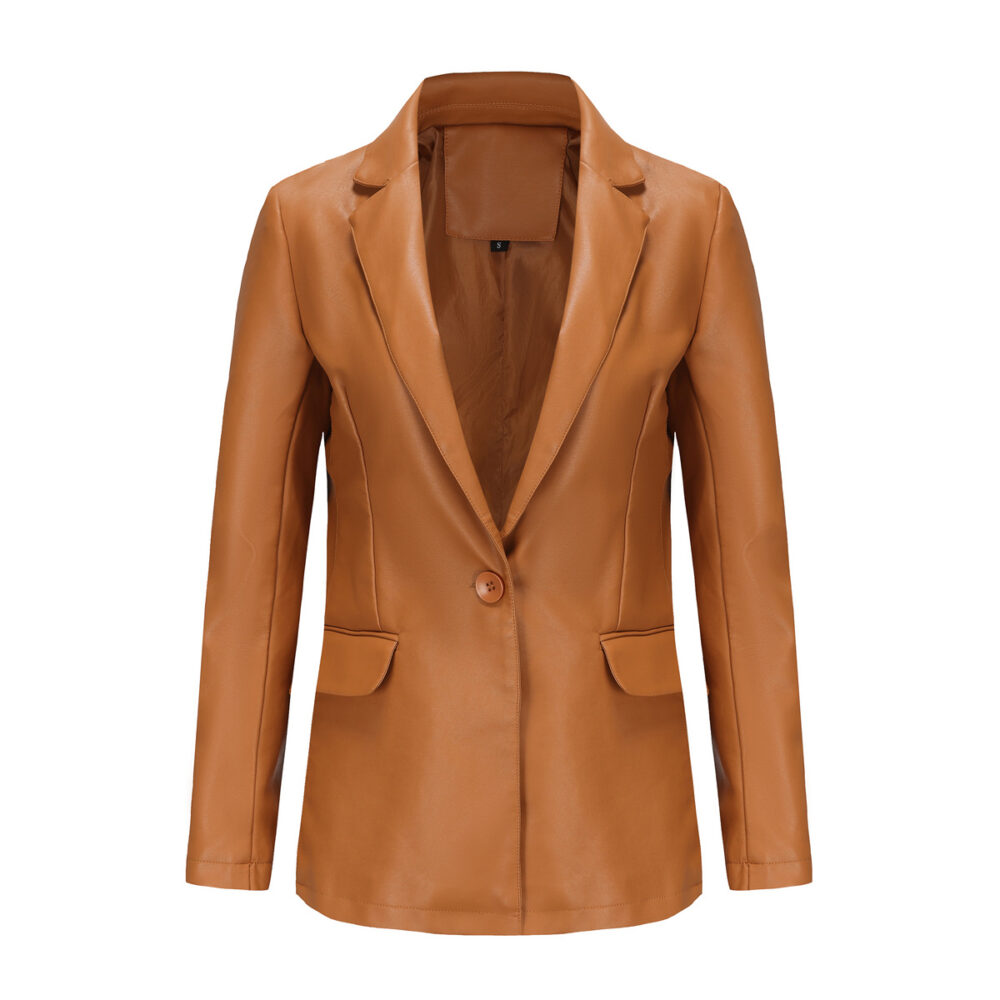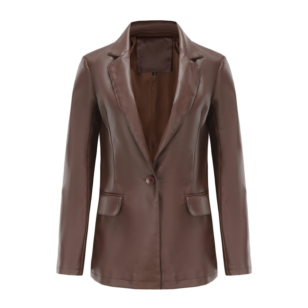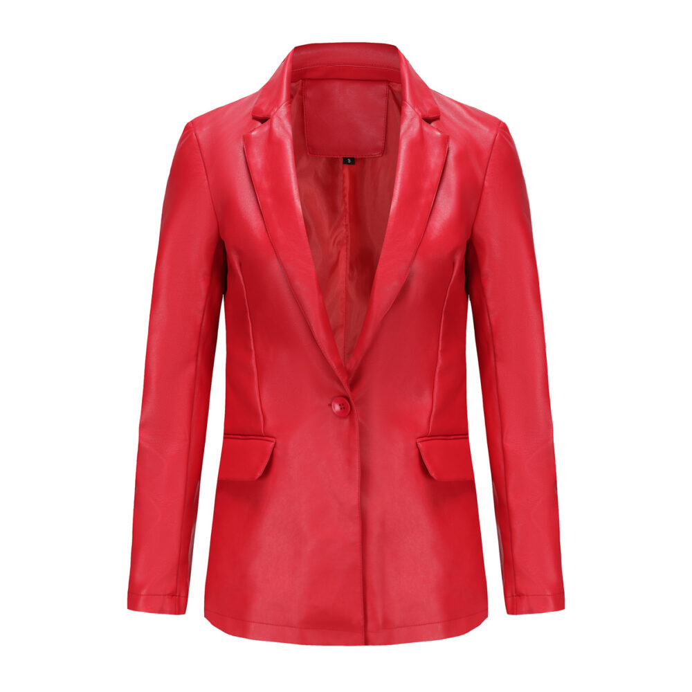 Be the first to review “Long sleeved jacket women single button commuter casual leather jacket suit”Cancel Reply