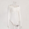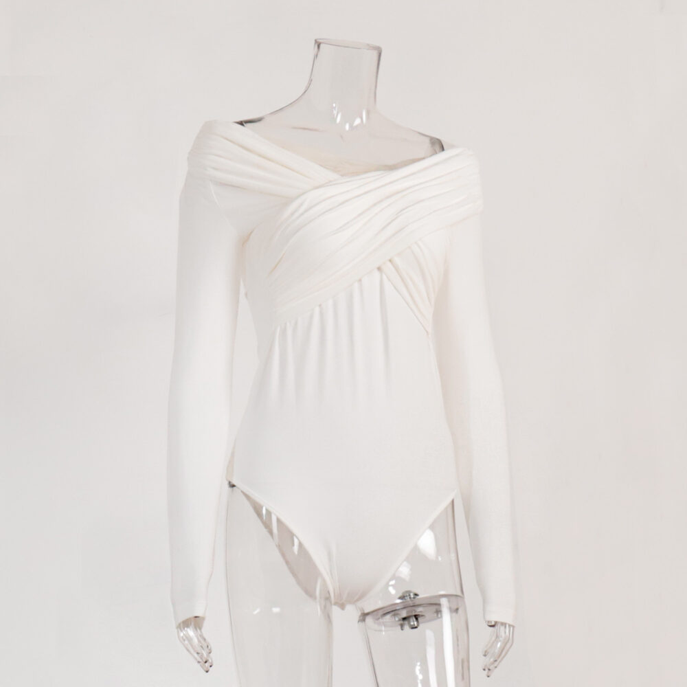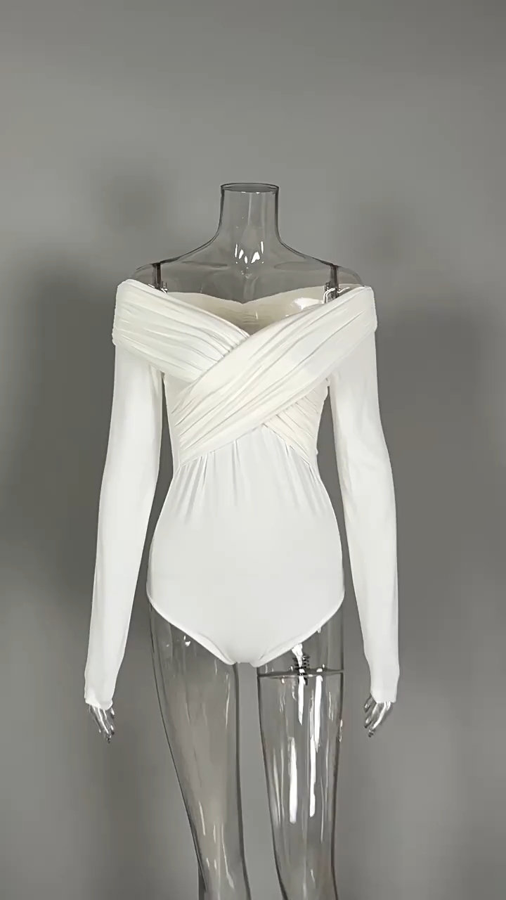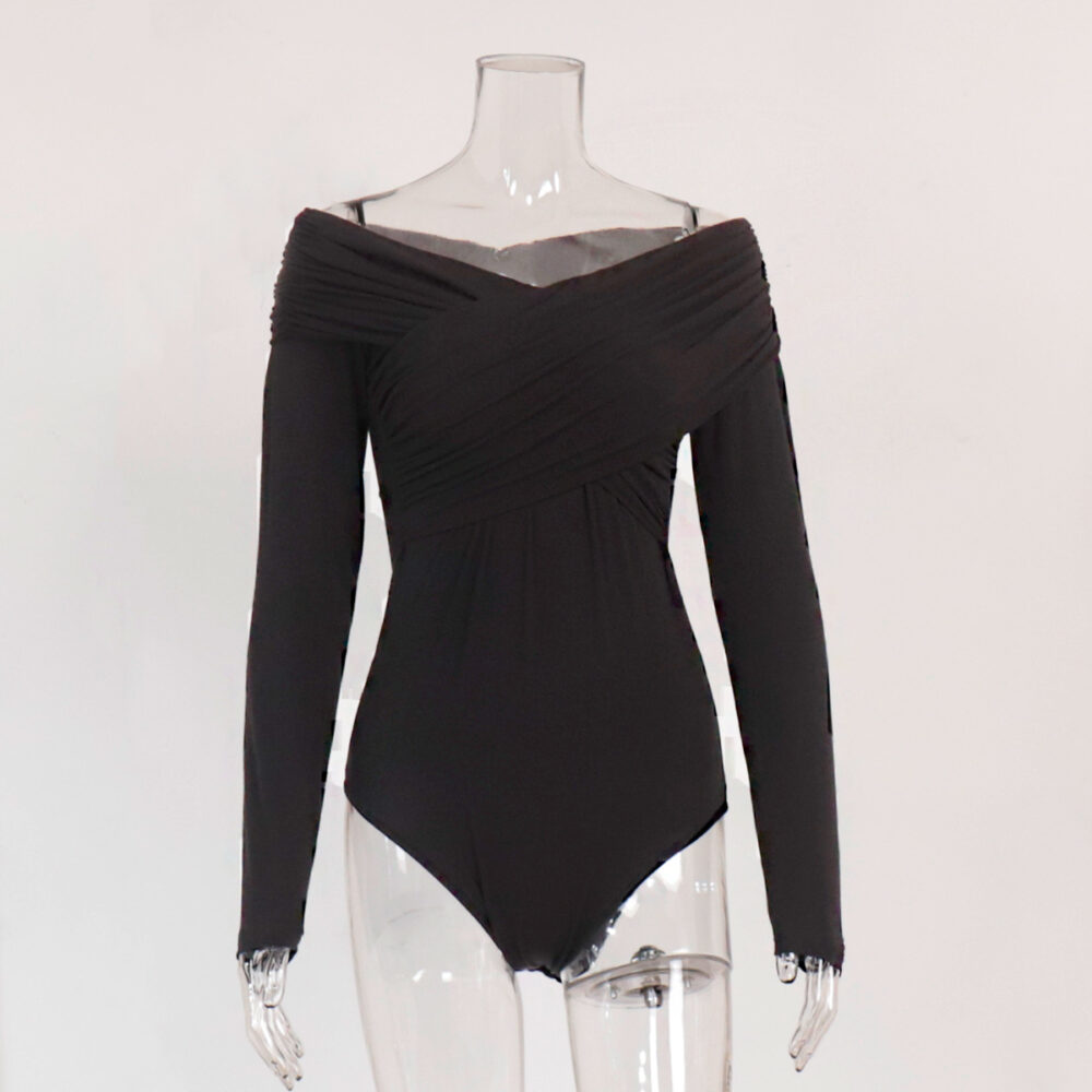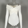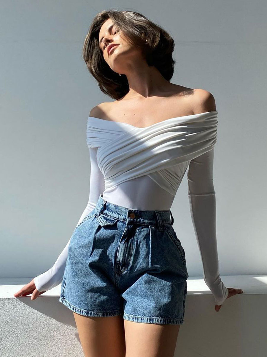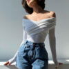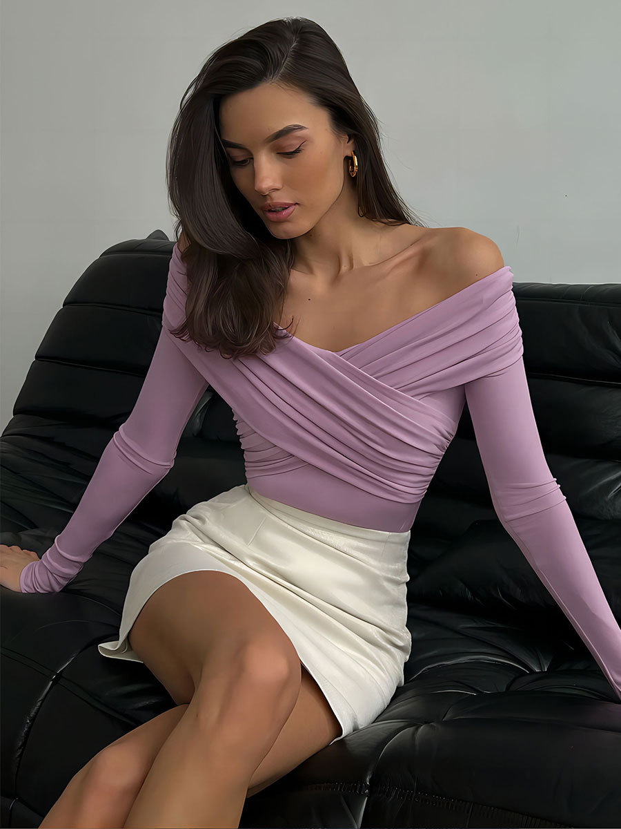 Monochrome pleated one-piece cross-fitting long sleeves bottoming shirt