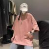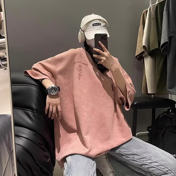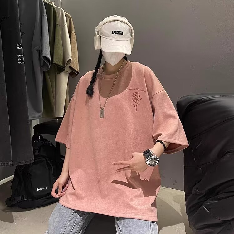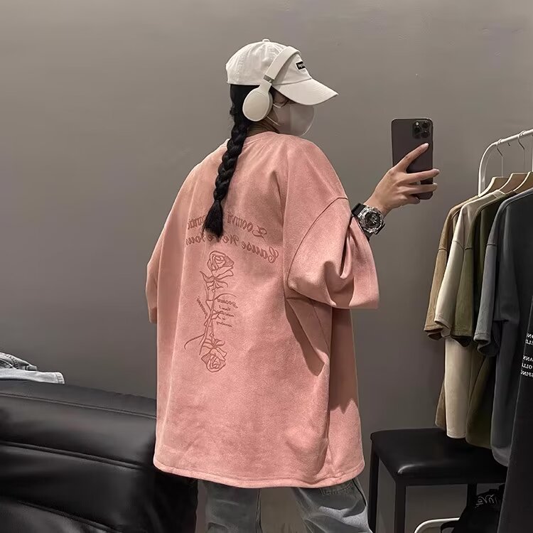 Pink N suede T-shirt Large size loose sleeve t-shirt