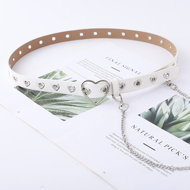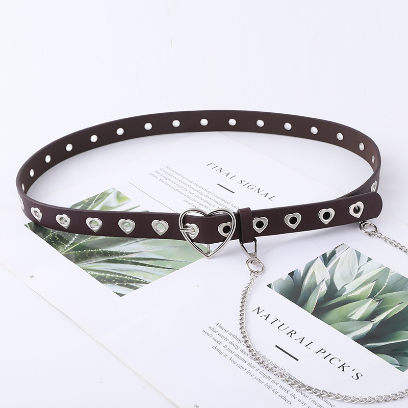 Punk heart-shaped corn buckle hollow decorative belt ladies casual love buckle tie-in jeans chain belt