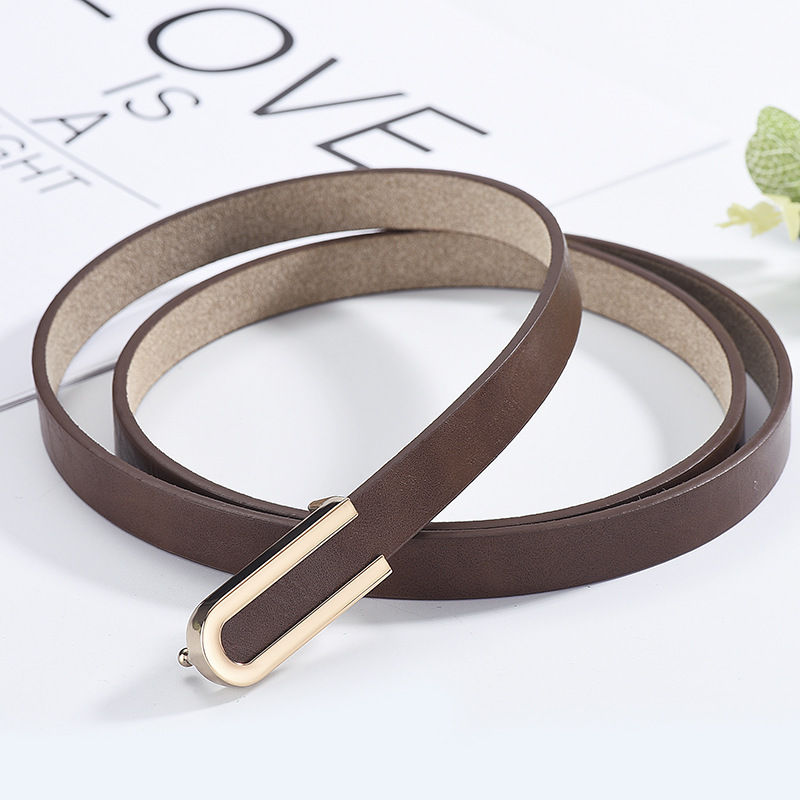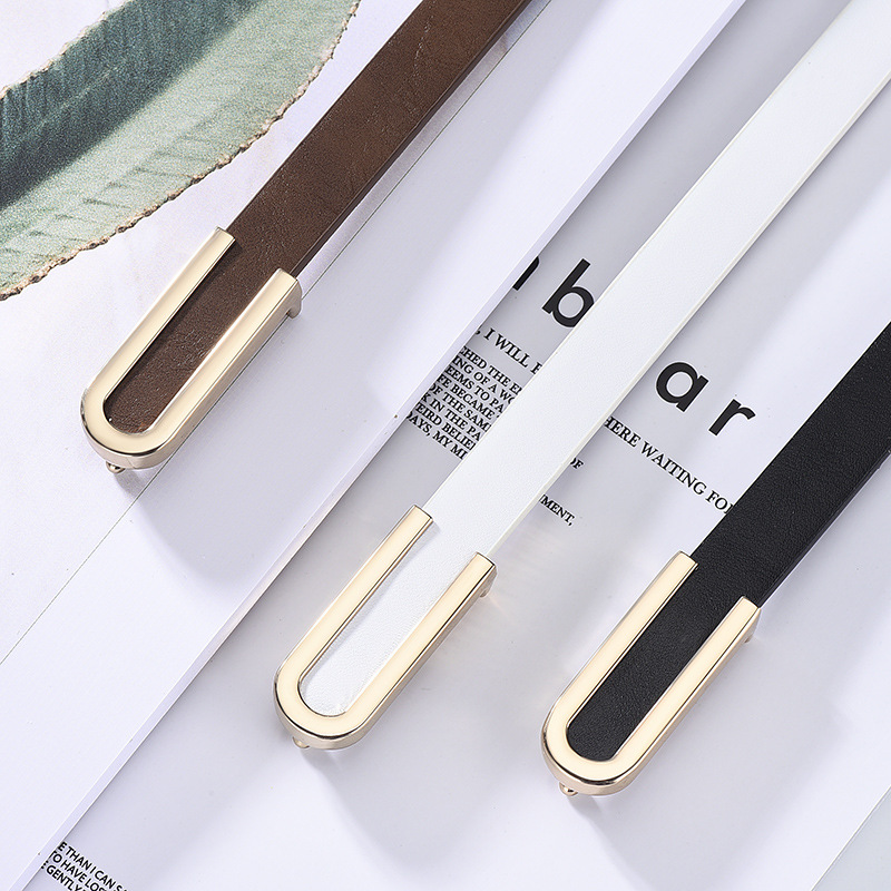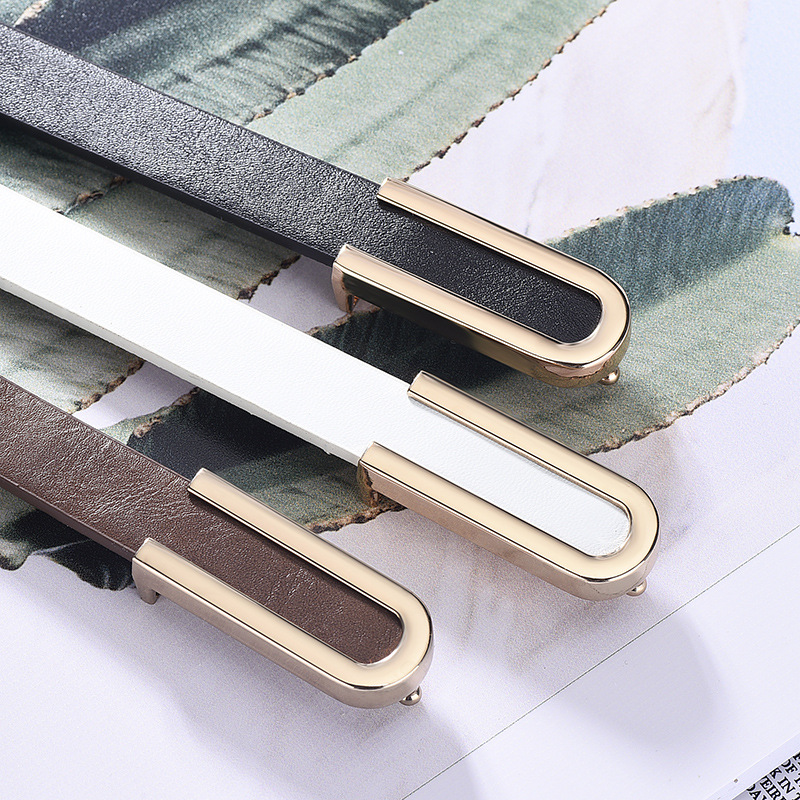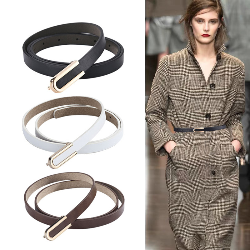 Pure cowhide thin belt lady with dress dress fashion Korean version ins style skirt belt simple leather belt