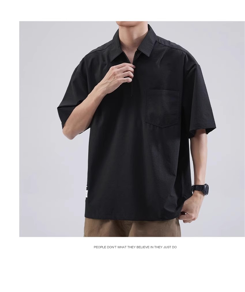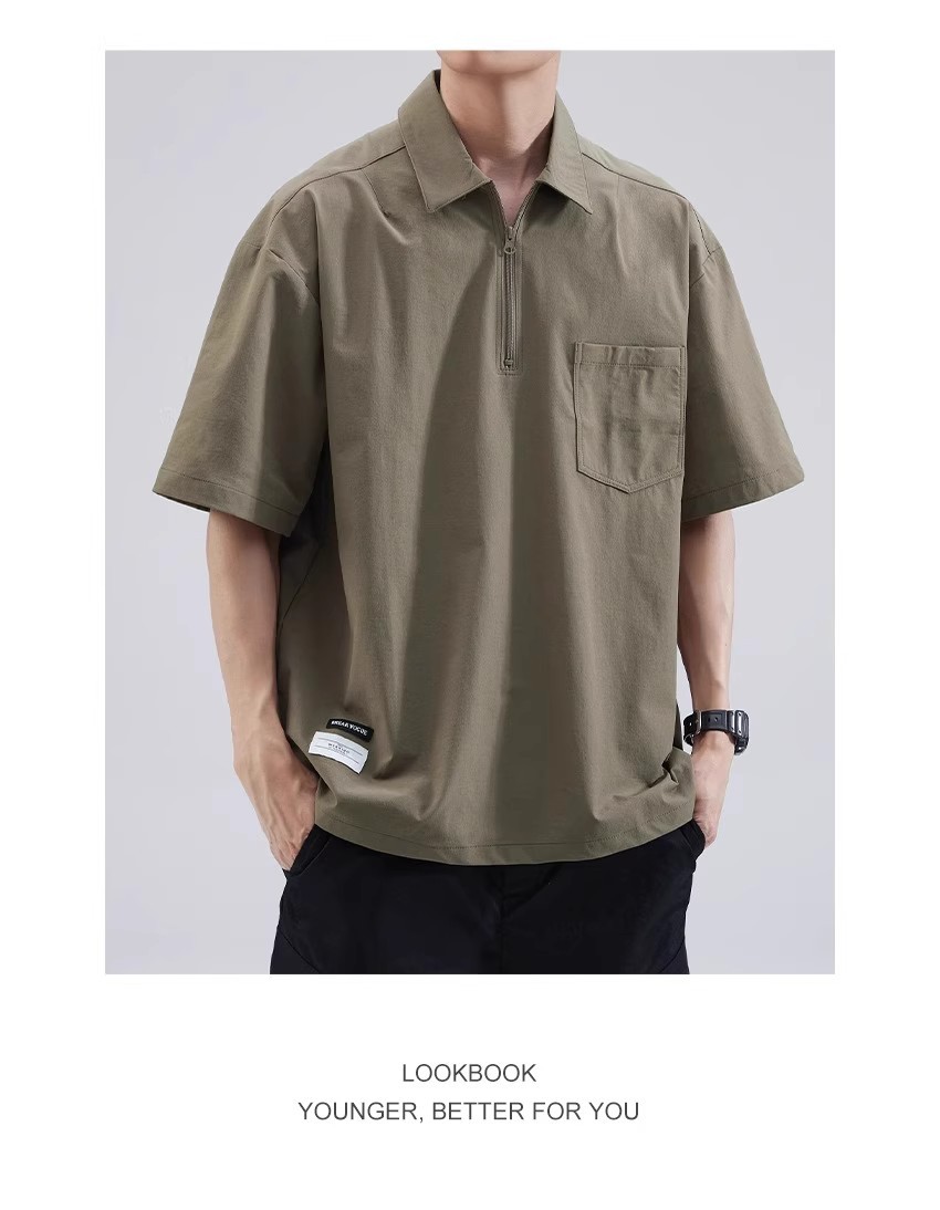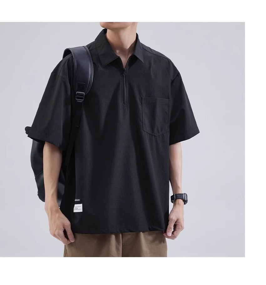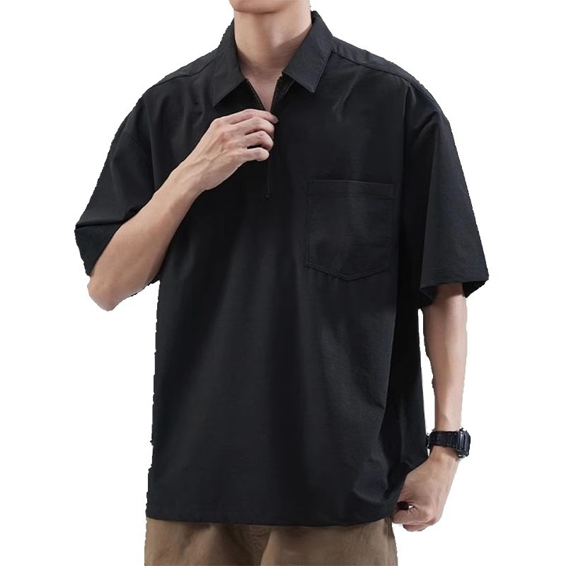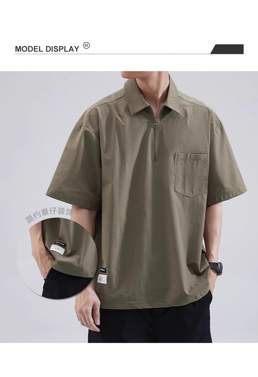 Retro fashion large size loose half zipper lapel t-shirt polo