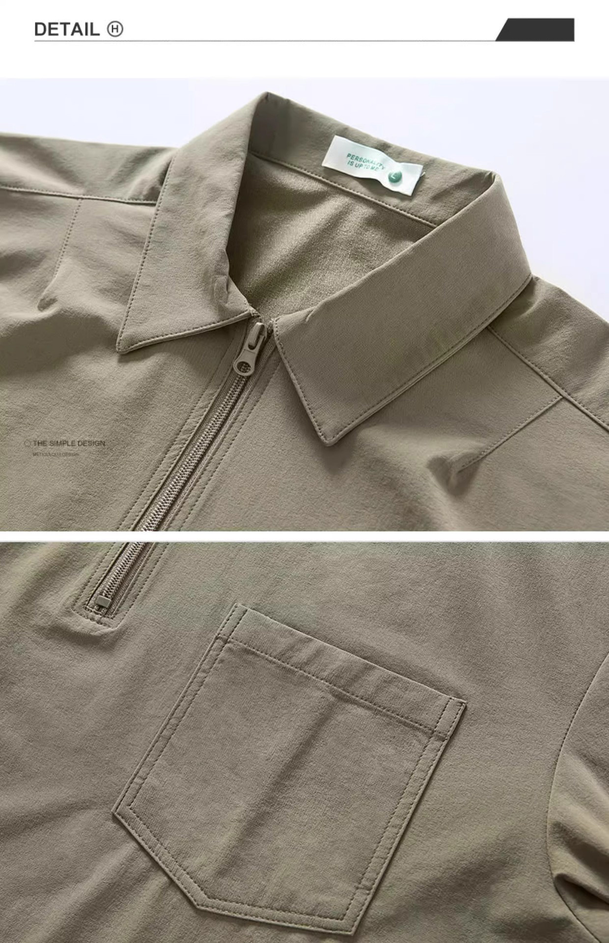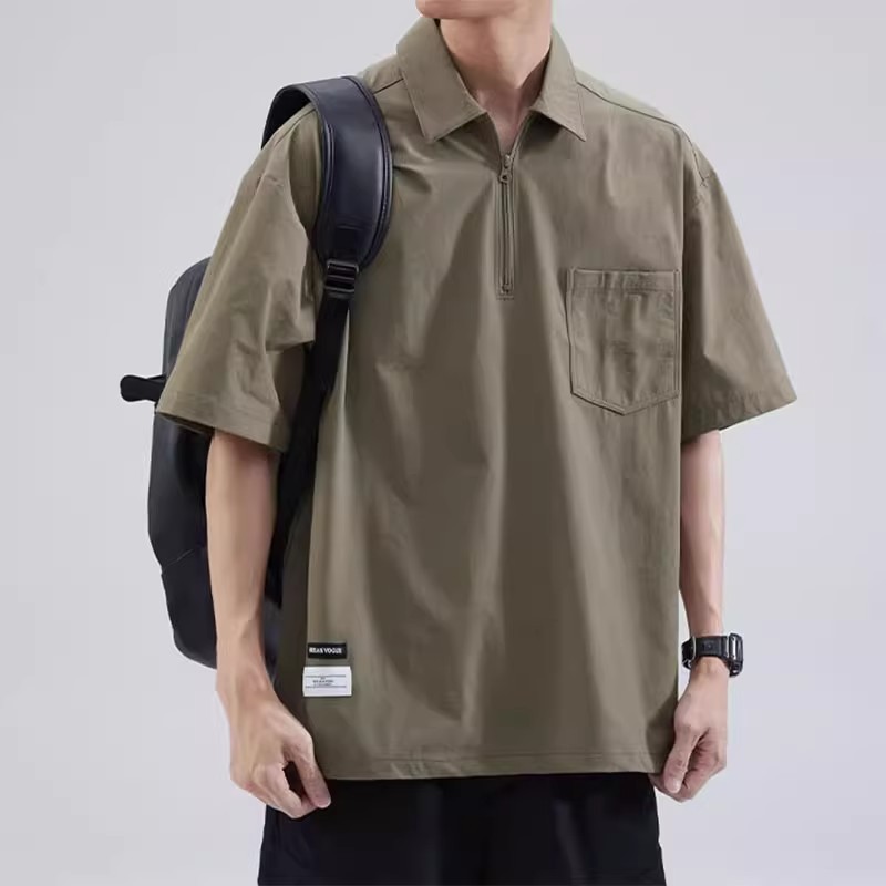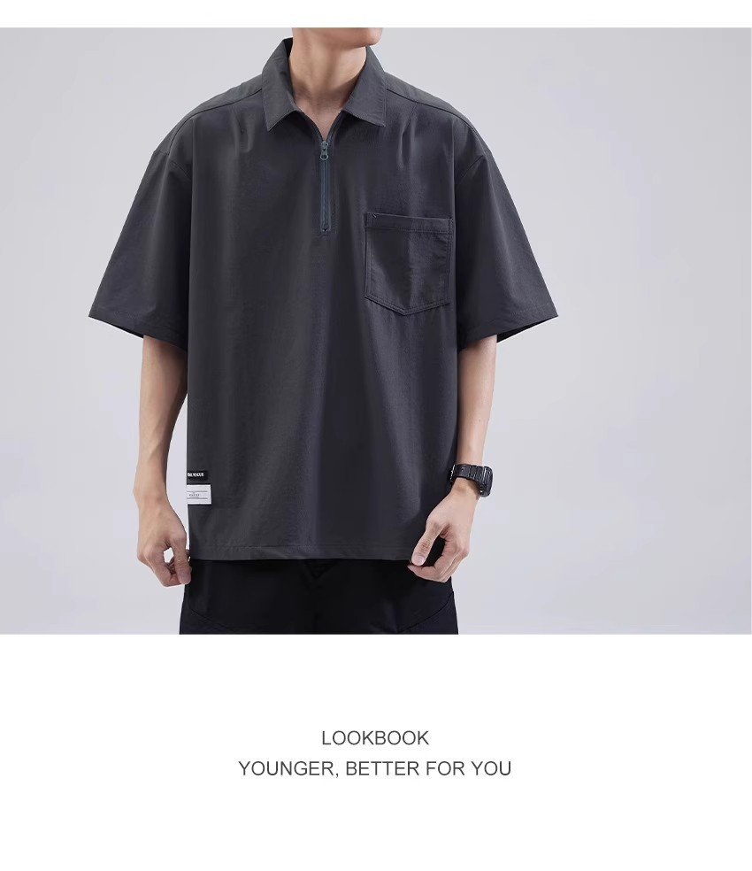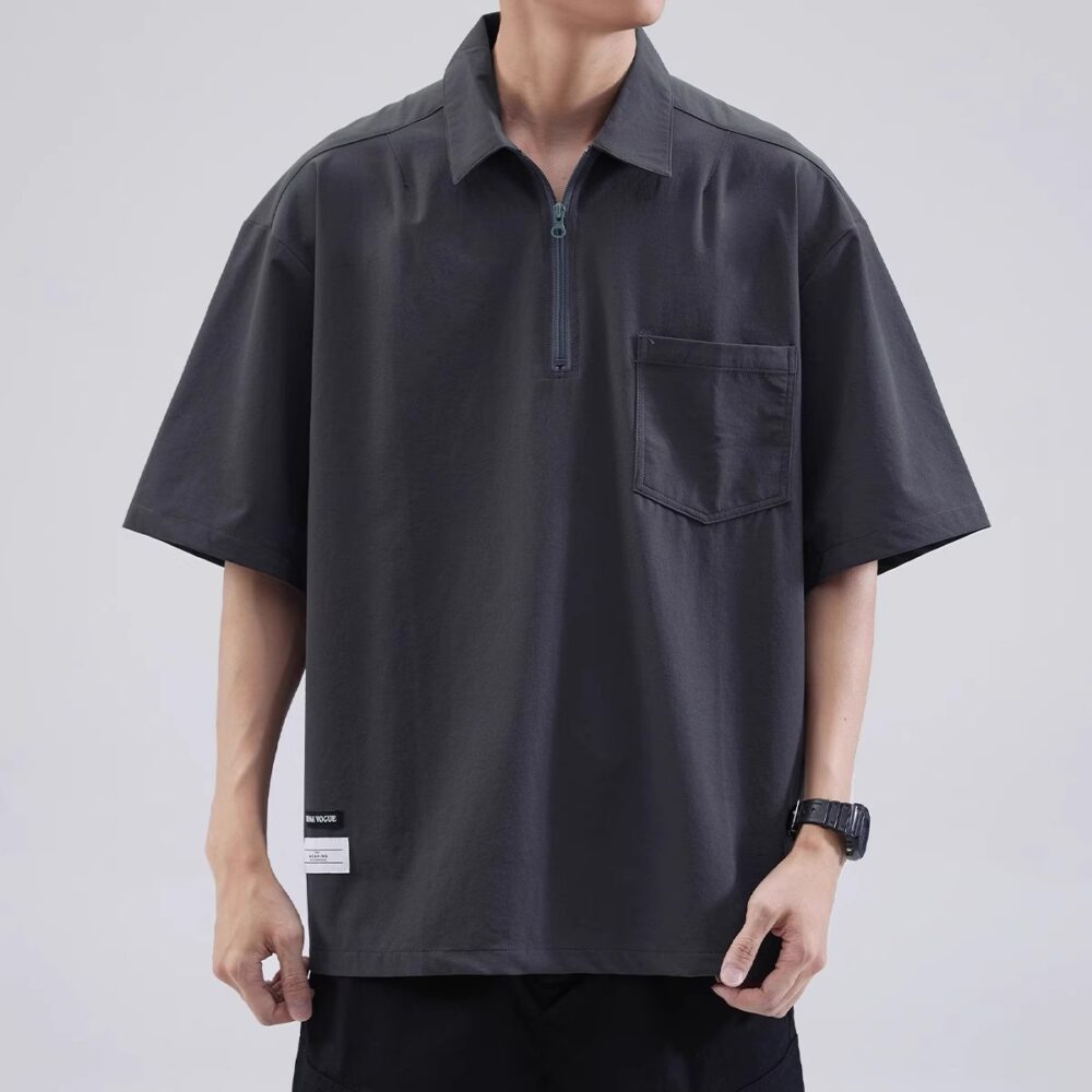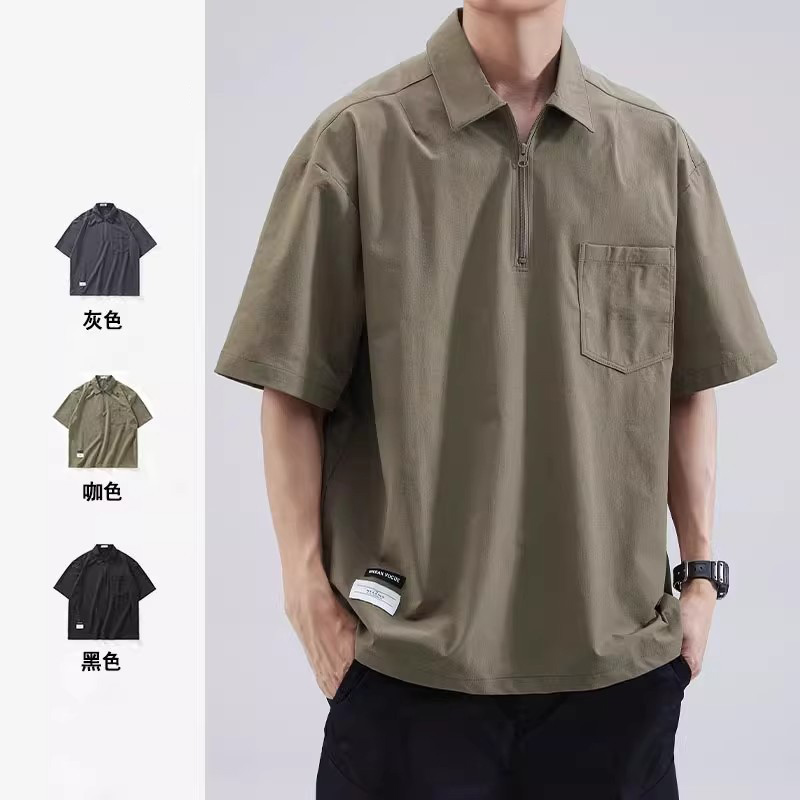 Retro fashion large size loose half zipper lapel t-shirt polo