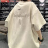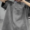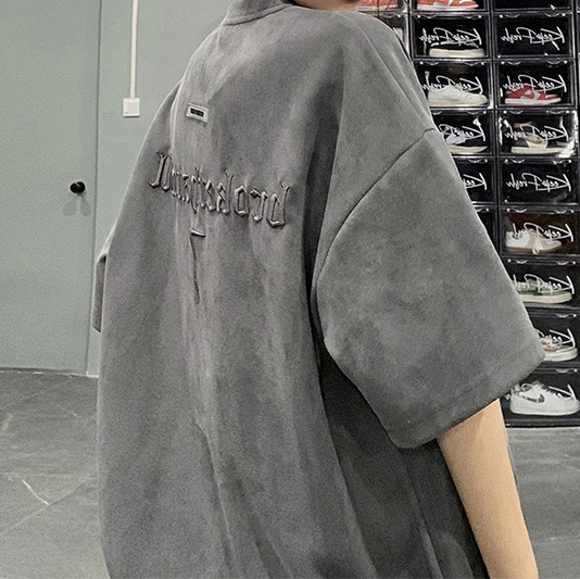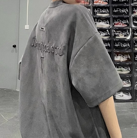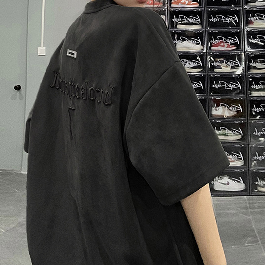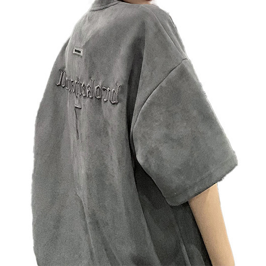 Retro ruffian handsome embroidery Loose Suede Short-sleeved t-shirt