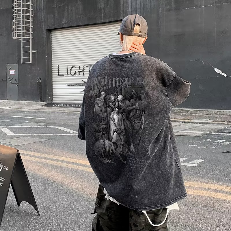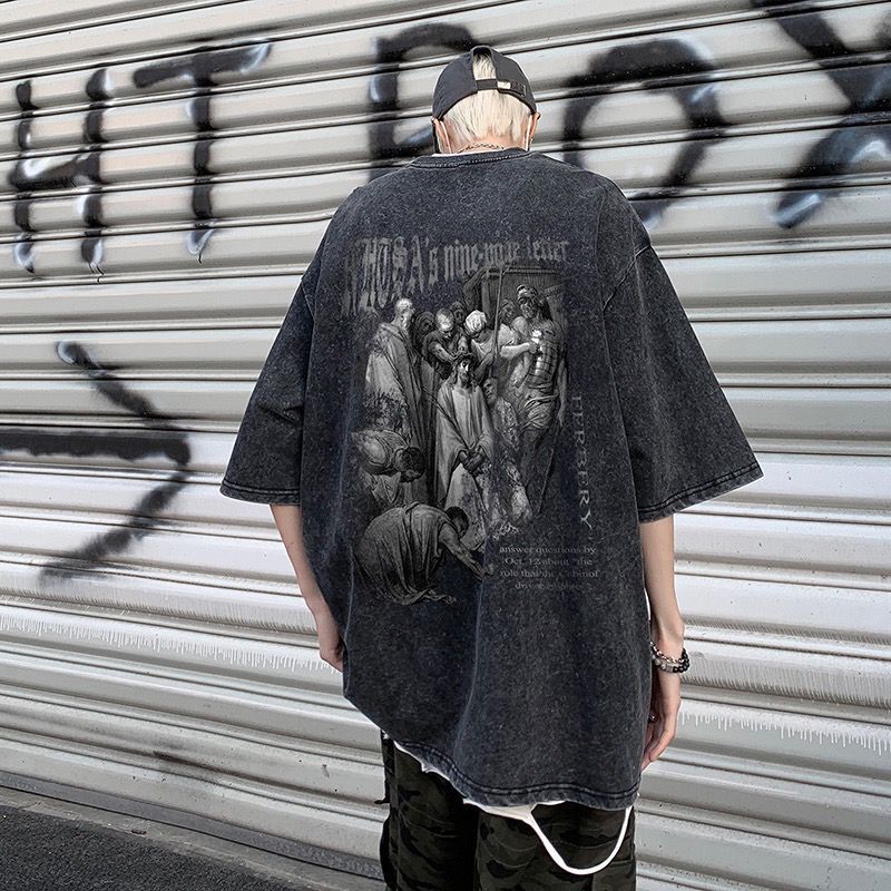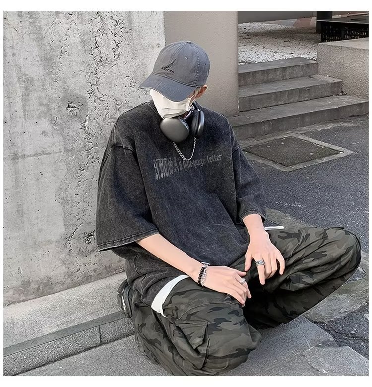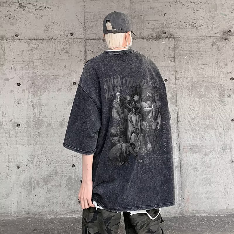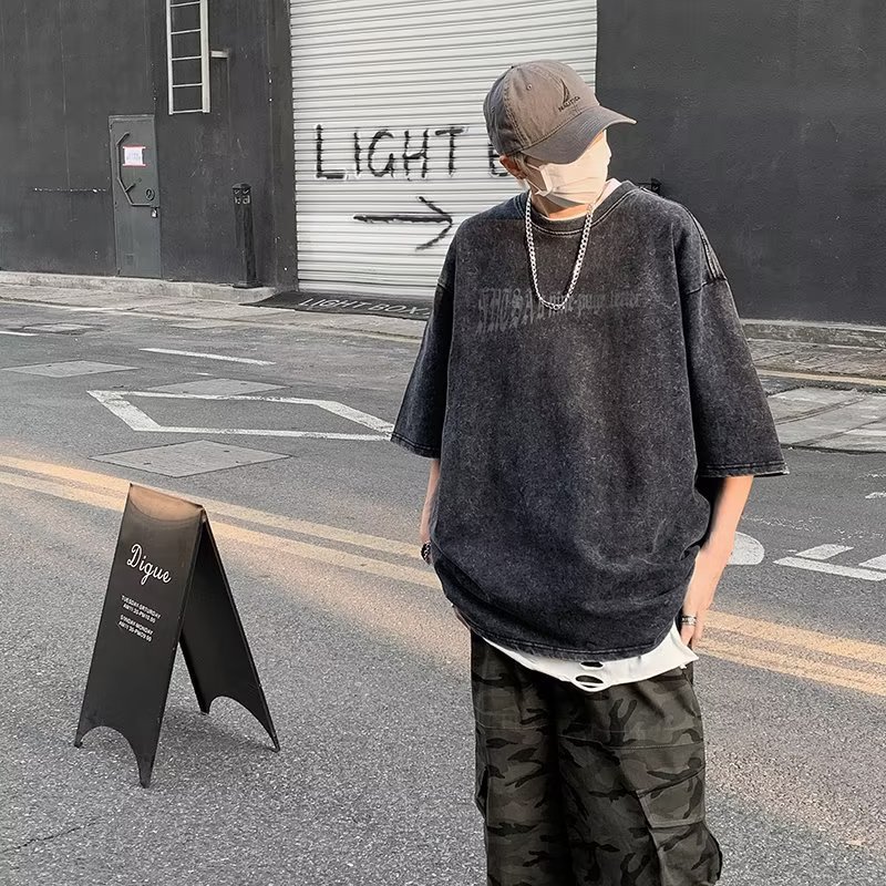 Retro washed T-shirt High Street hip hop short sleeve blouse