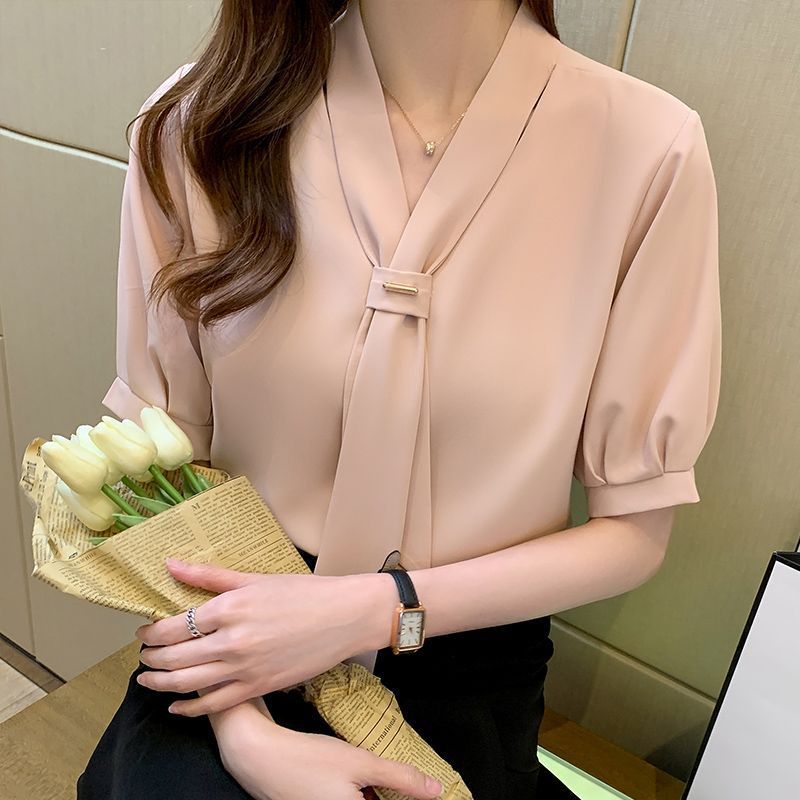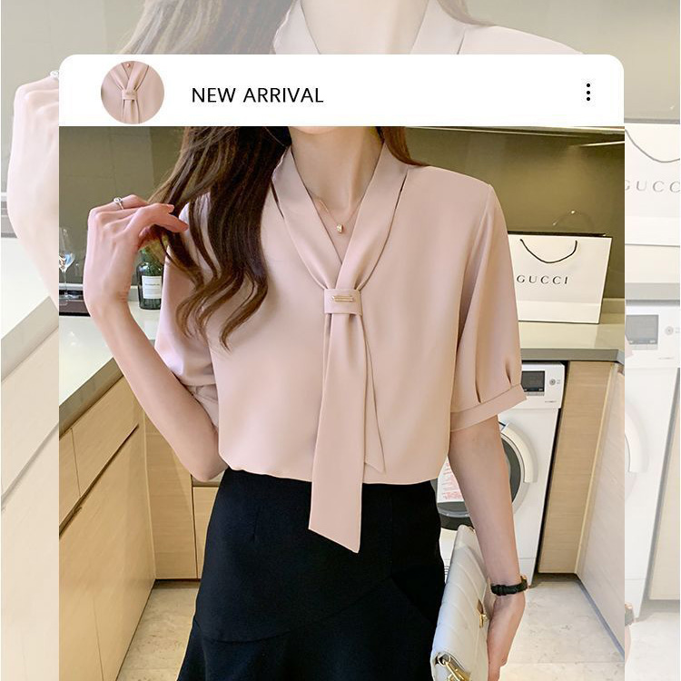 Temperament bow-tie professional white-collar work clothes Short sleeve shirt