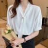 Be the first to review “Temperament bow-tie professional white-collar work clothes Short sleeve shirt”