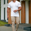 White Sports Fitness Leisure. stretch vertical short-sleeved polo shirt