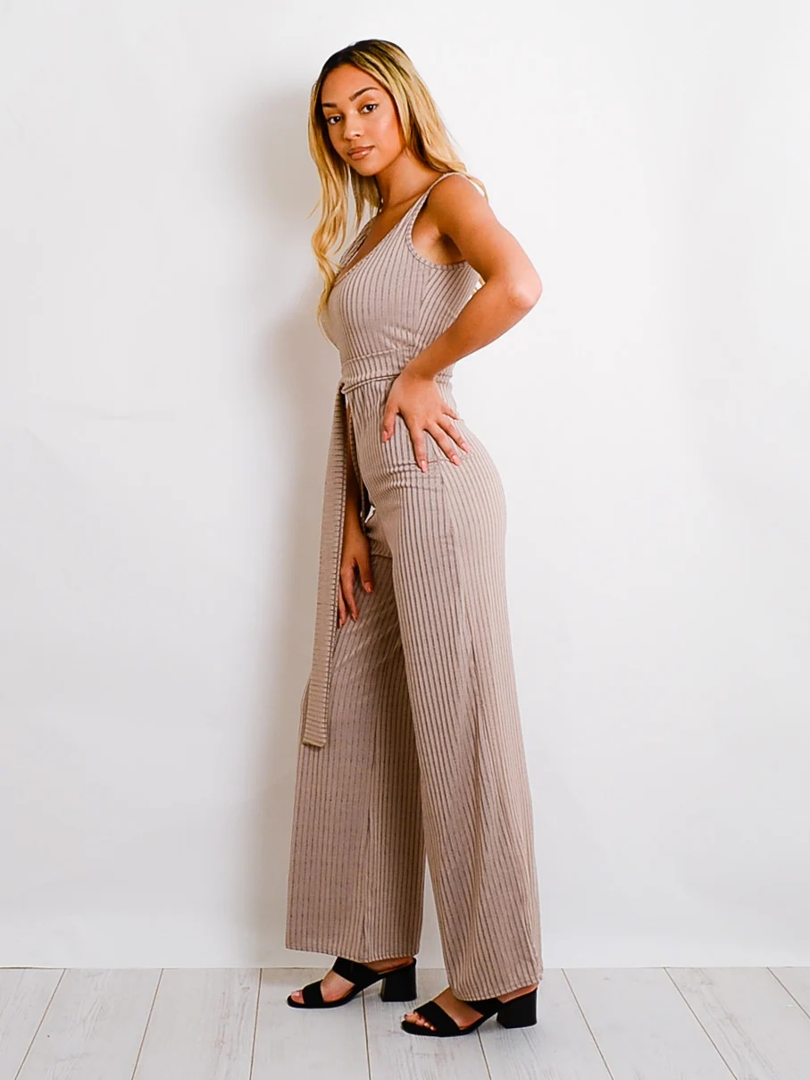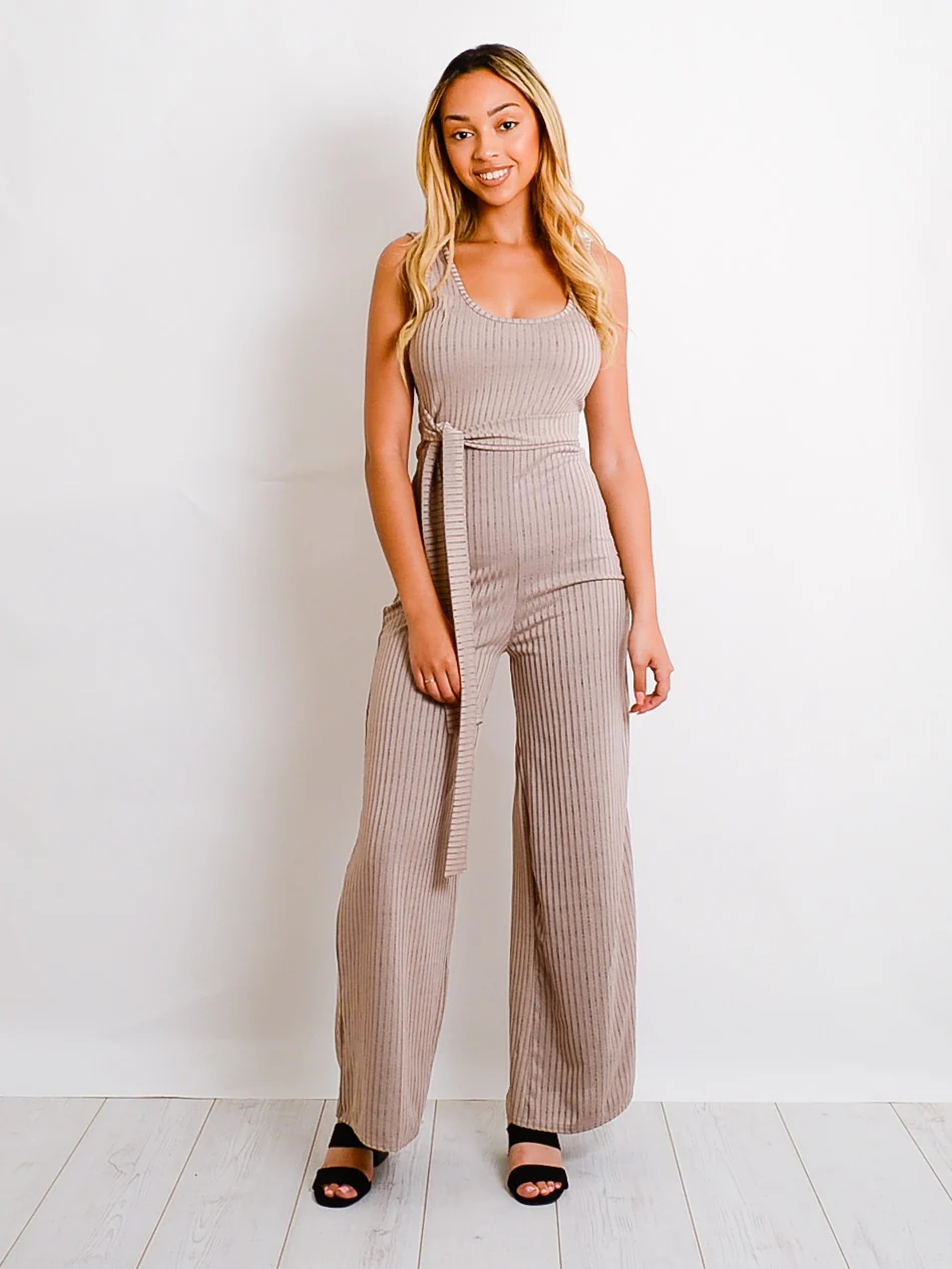 Zip Back Tie Knot Ribbed Jumpsuit